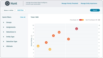Cognito Detect highlights hosts with suspicious behavior by observing network traffic, and using machine learning and AI to classify the traffic. We would expect to see hosts which have been compromised to have Command and Control type detections, lateral movement detections, or local application or service accounts being used across the estate. If an edge device is compromised, there may also be more reconnaissance activity from those devices inside the DMZ.