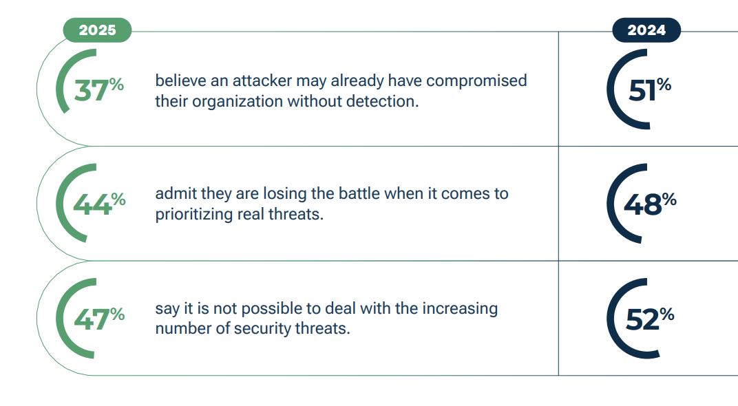 Across the surveyed audience of defenders, 44% admit they are losing the battle when it comes to prioritizing real threats.